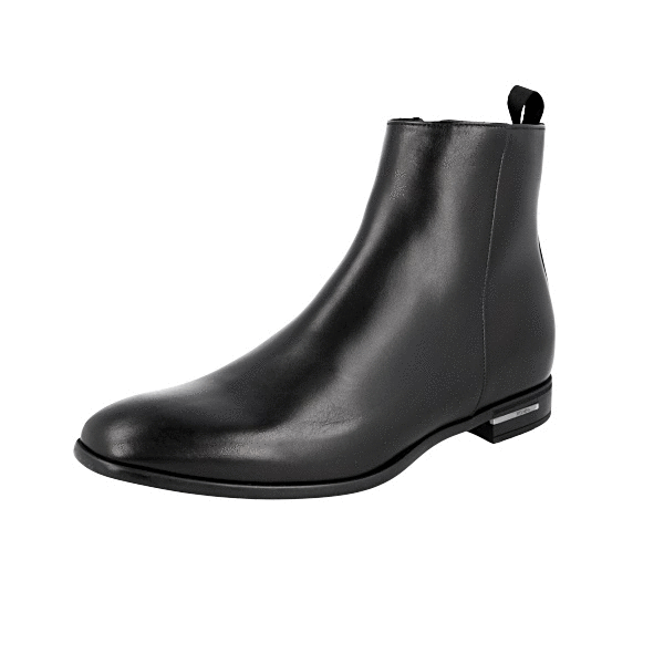 Prada Men's Black welt-sewn Leather Half-Boot 2TE131