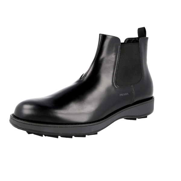 Prada Men's Black Brushed Spazzolato Leather Half-Boot 2TE136