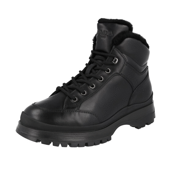 Prada Men's Black Leather Brixxen Shearling Half-Boot 2TE157