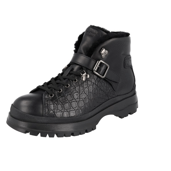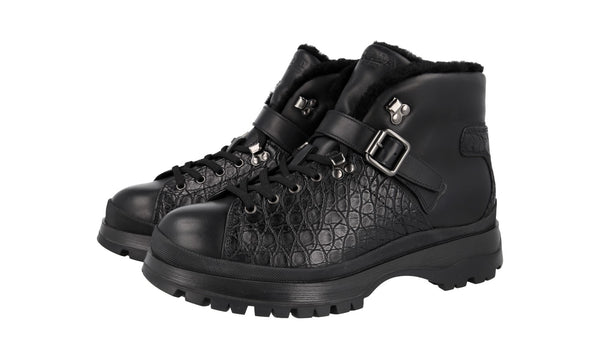 Prada Men's Black Leather Brixxen Croc Shearling Half-Boot 2TE158
