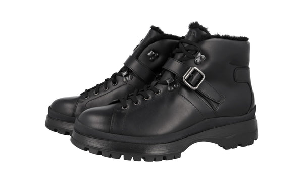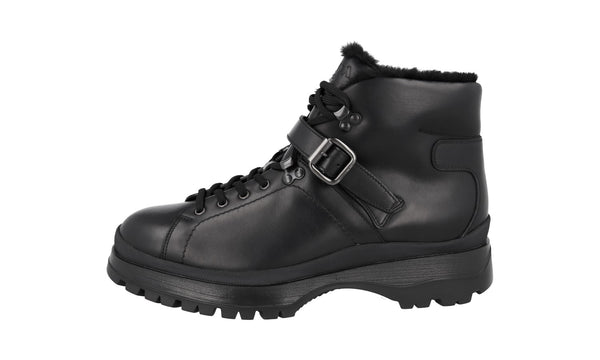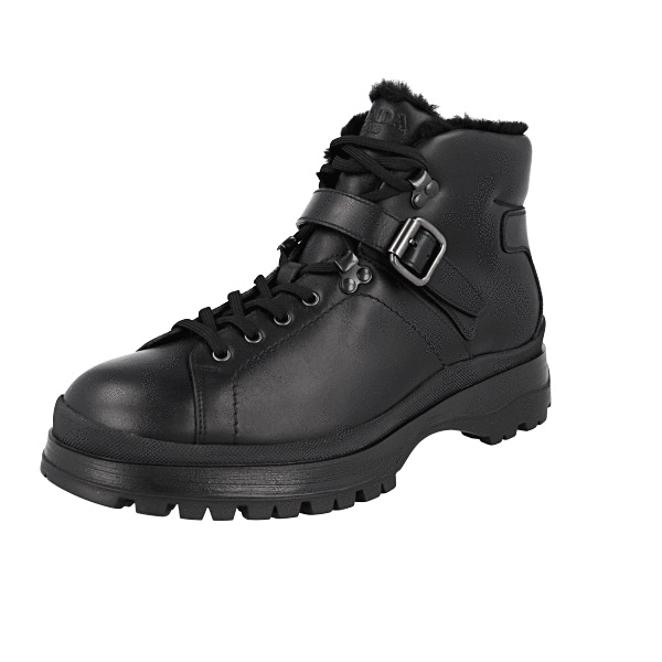 Prada Men's Black Leather Brixxen Shearling Half-Boot 2TE158