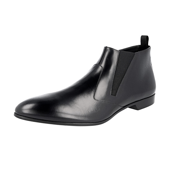 Prada Men's Black Brushed Spazzolato Leather Half-Boot 2TG087