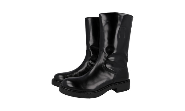 Prada Men's Black Brushed Spazzolato Leather Half-Boot 2UE012