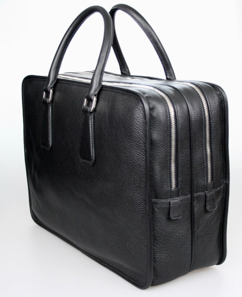 Prada Men's Black Leather Briefcase Weekender Folder Bag 2VA056
