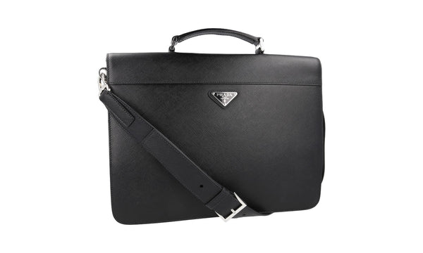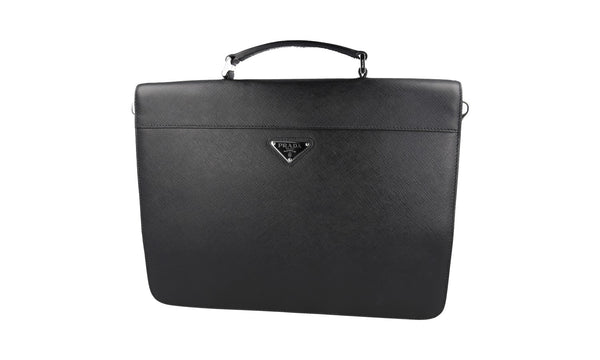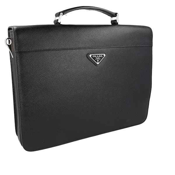 Prada Men's Black Saffiano Leather Work Bag Folder Bag 2VB019