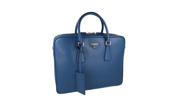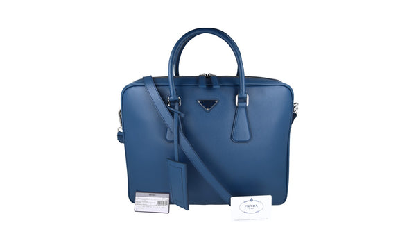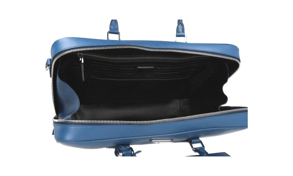 Prada Men's Blue Saffiano Leather Briefcase Work Folder Bag 2VE011