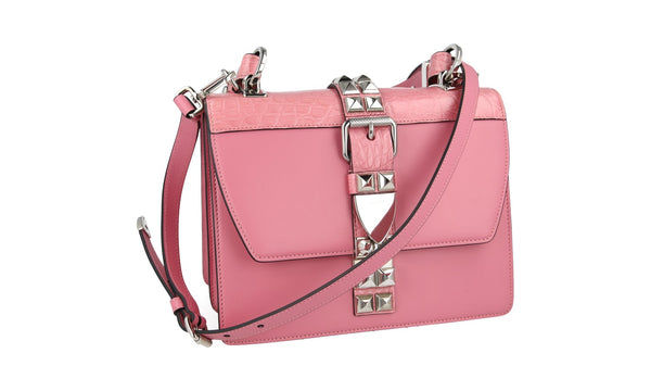 Prada Women's Pink Leather Elektra Croc Shoulder Bag 1BA203