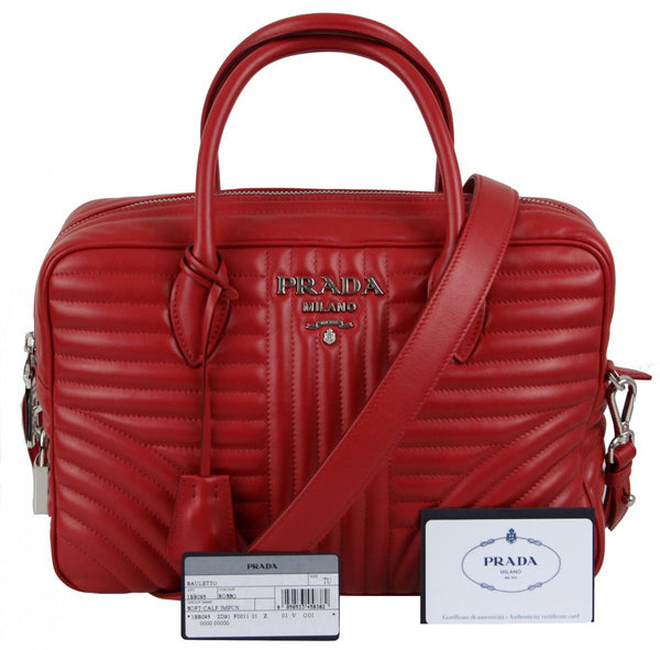 Prada Women's Red Leather Diagramme Folder Bag 1BB095