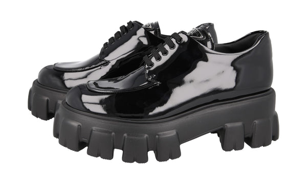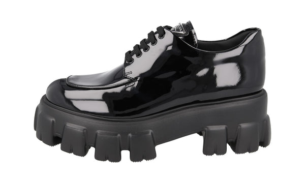 Prada Women's Black Leather Chocolate Monolith Lace-up Shoes 1E255N
