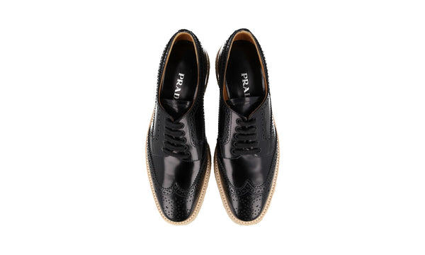 Prada Women's Black Leather Plateau Derby Full Brogue Business Shoes 1E722E