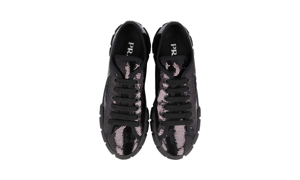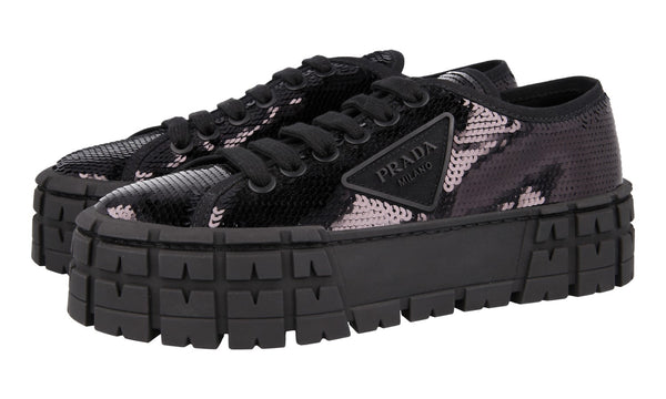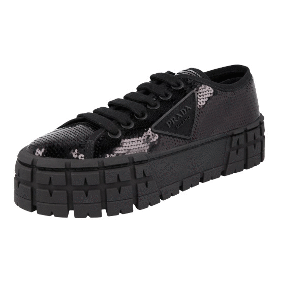 Prada Women's Black Cassetta Double Wheel Sequin Sneaker 1E787M