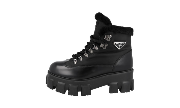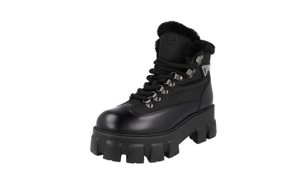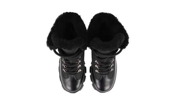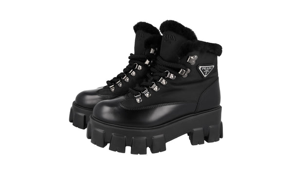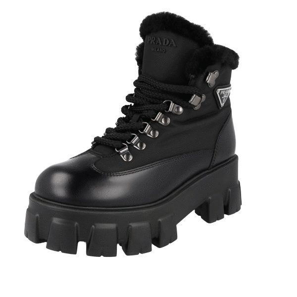 Prada Women's Black Leather Monolith Shearling Lammfell Winter Boots 1W380M