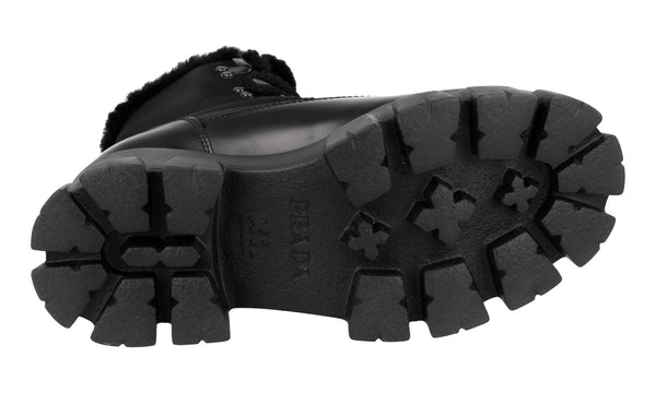 Prada Women's Black Leather Monolith Shearling Lammfell Winter Boots 1U363M