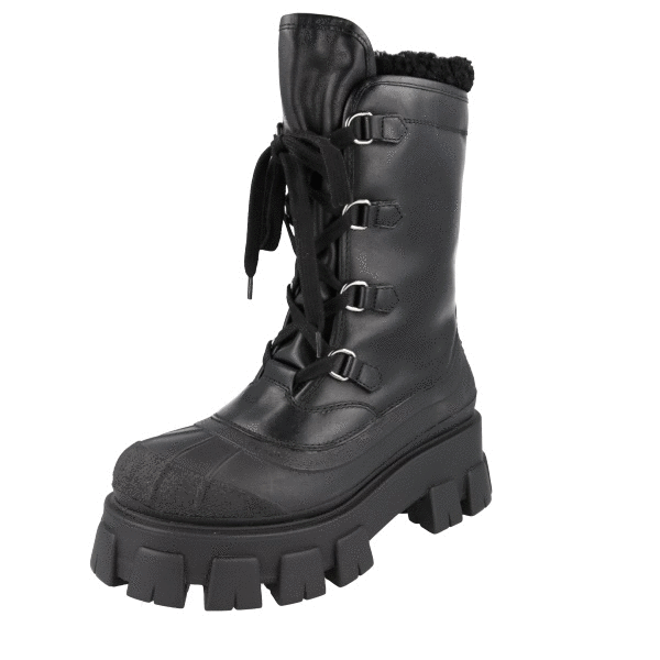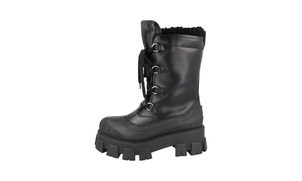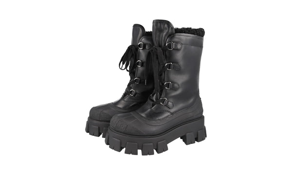 Prada Women's Black Leather Monolith Shearling Lammfell Winter Boots 1W380M