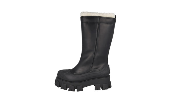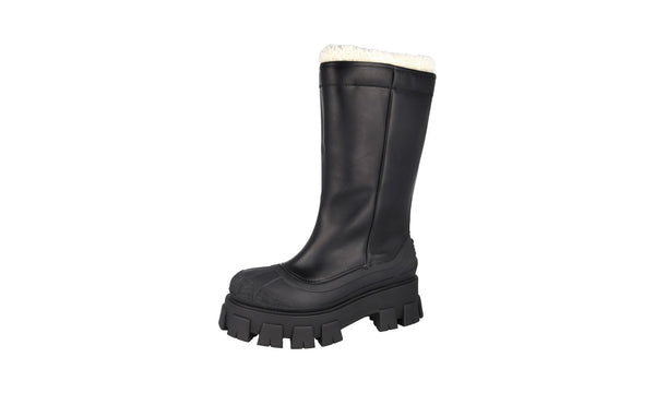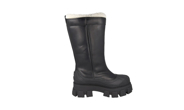 Prada Women's Black Leather Monolith Shearling Lammfell Winter Boots 1W380M