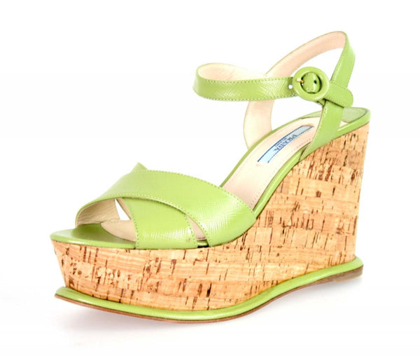 Prada Women's Green Saffiano Leather Sandals 1XZ265