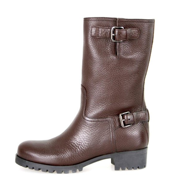 Prada Women's Black Leather Shearling Fur Boots 1U635N