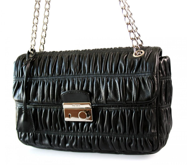 Prada Women's Black Leather Gaufre Shoulder Bag BT0939