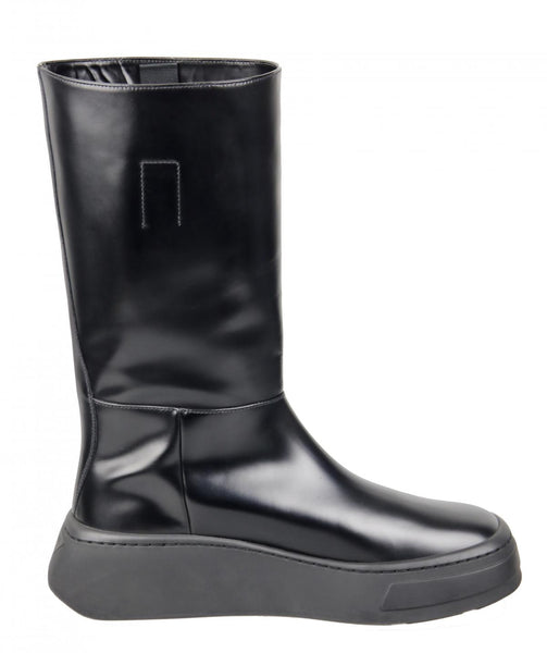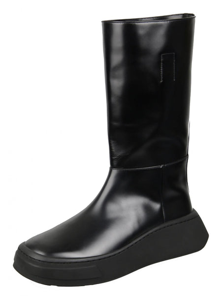 Prada Men's Black Leather Monolith Shearling Boots 2WG015