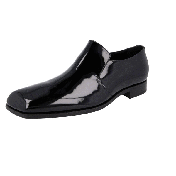 Prada Men's Black Brushed Spazzolato Leather Square Oxford Spray Runway Business Shoes 2EA165