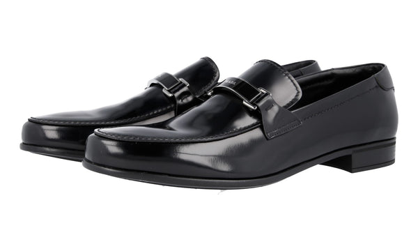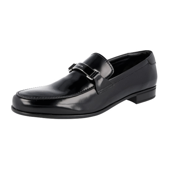 Prada Men's Black Brushed Spazzolato Leather Logo Business Shoes 2DB145