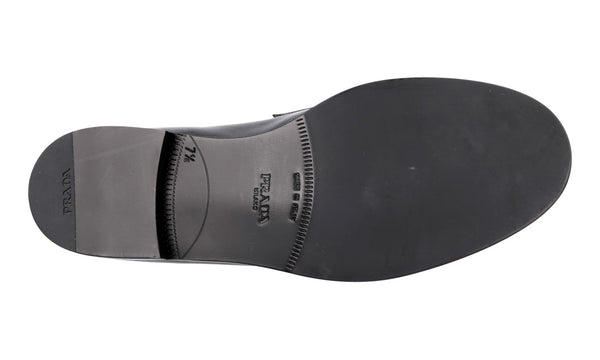 Prada Men's Black Brushed Spazzolato Leather Square Oxford Spray Runway Business Shoes 2EA165