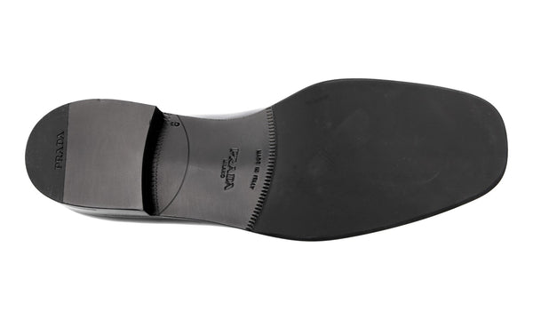 Prada Men's Black Brushed Spazzolato Leather Square Oxford Spray Runway Business Shoes 2EA165