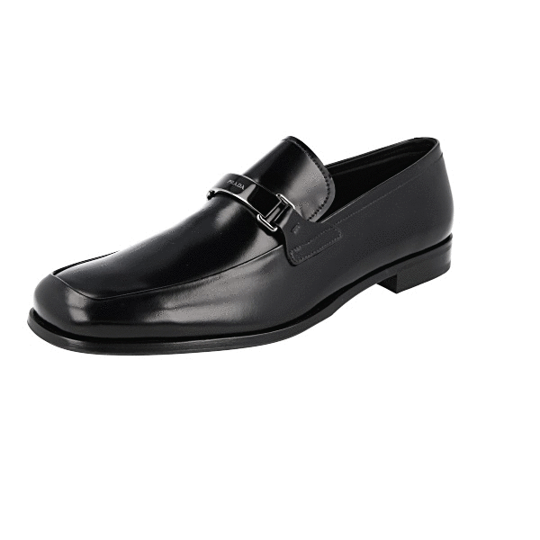 Prada Men's Black Brushed Spazzolato Leather Logo Business Shoes 2DB160