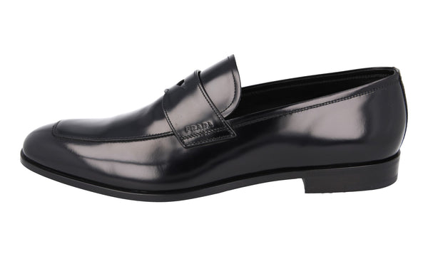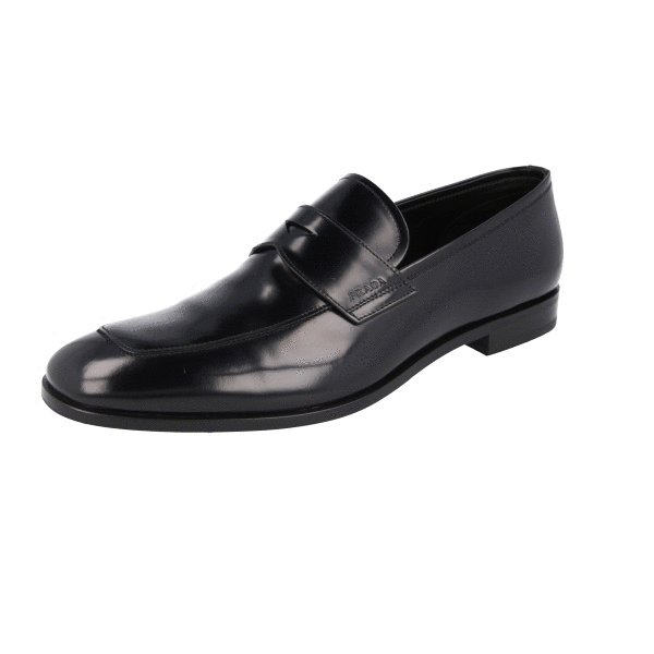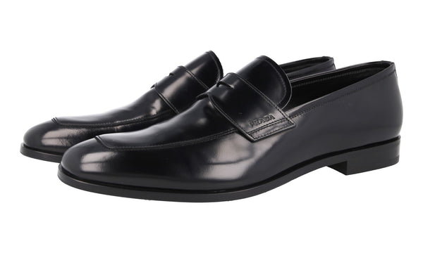 Prada Men's Black Brushed Spazzolato Leather Penny Loafer Business Shoes 2DB161