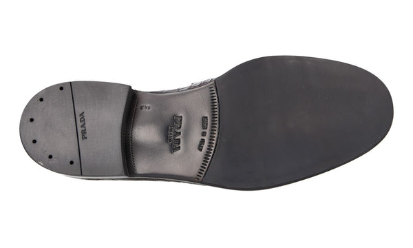 Prada Men's Black Brushed Spazzolato Leather Square Oxford Spray Runway Business Shoes 2EA165