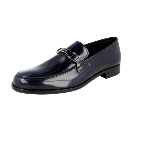 Prada Men's Blue Brushed Spazzolato Leather Logo Business Shoes 2DB179