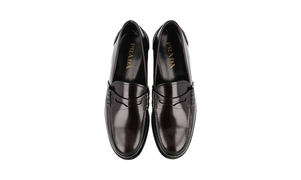 Prada Men's Brown welt-sewn Leather Penny Business Shoes 2DB191