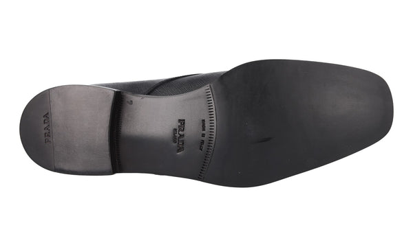 Prada Men's Black Brushed Spazzolato Leather Square Oxford Spray Runway Business Shoes 2EA165