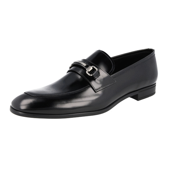 Prada Men's Black Leather Logo Business Shoes 2DC146