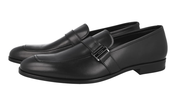 Prada Men's Black Leather Logo Loafer Slip On Business Shoes 2DC219