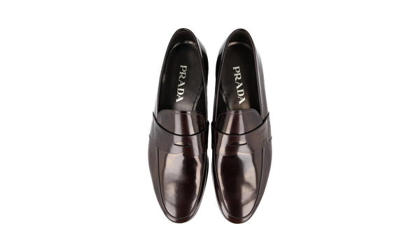 Prada Men's Brown Leather Penny Loafer Business Shoes 2DE010