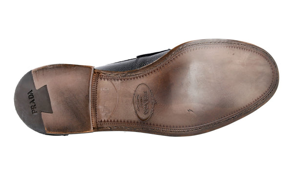 Prada Men's Black Brushed Spazzolato Leather Square Oxford Spray Runway Business Shoes 2EA165