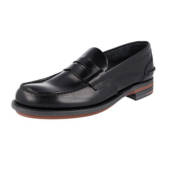 Prada Men's Black welt-sewn Leather Penny Loafer Business Shoes 2DE034
