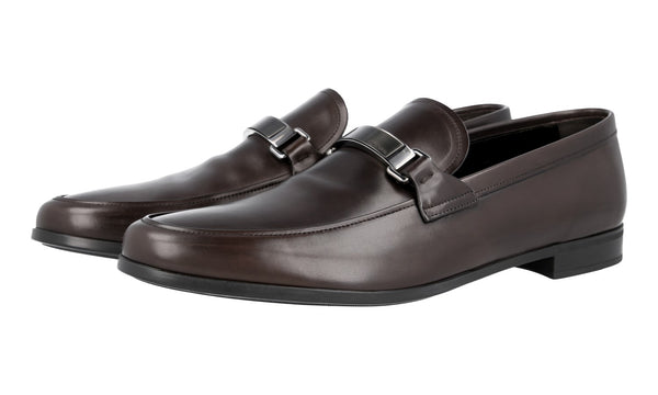 Prada Men's Black Brushed Spazzolato Leather Square Oxford Spray Runway Business Shoes 2EA165