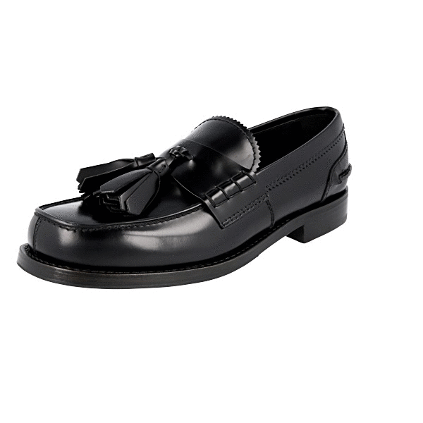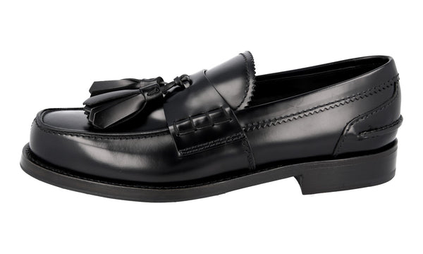 Prada Men's Black welt-sewn Leather Penny Tassle Loafer Business Shoes 2DG086