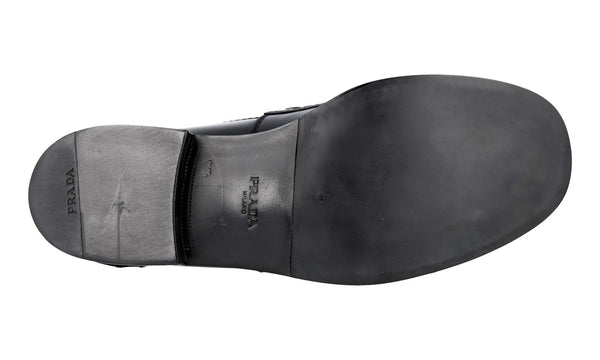 Prada Men's Black Brushed Spazzolato Leather Square Oxford Spray Runway Business Shoes 2EA165