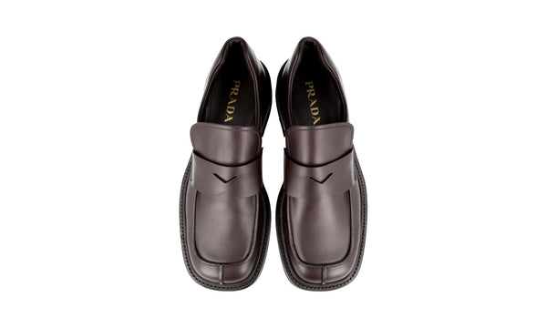 Prada Men's Brown welt-sewn Leather Penny Loafer Business Shoes 2DG110