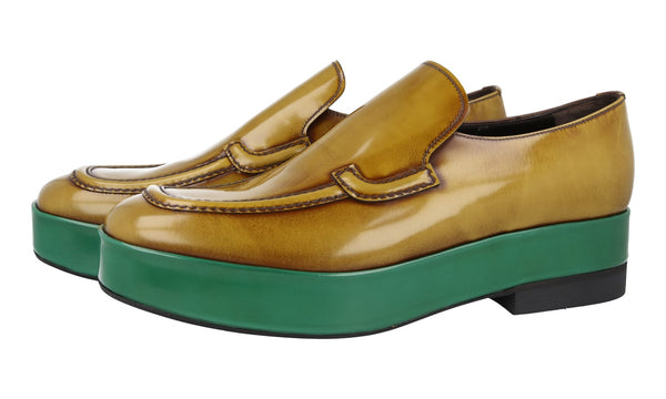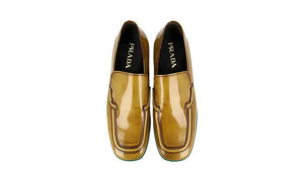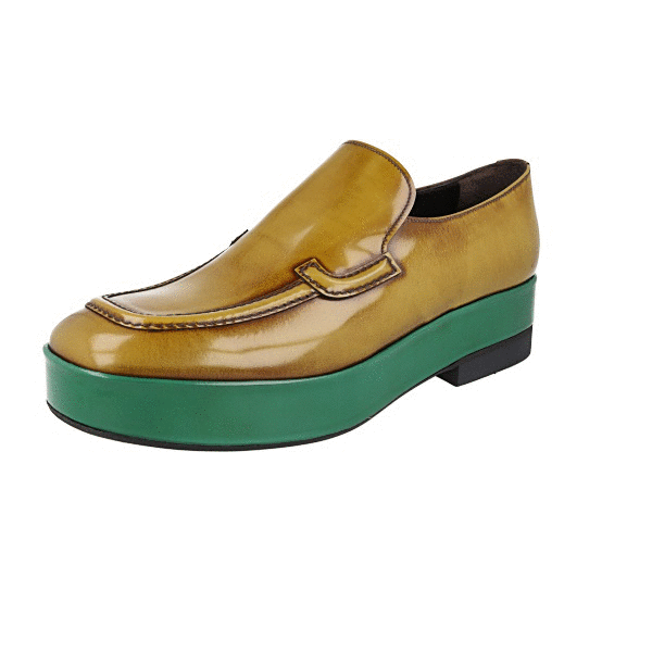 Prada Men's Brown Brushed Spazzolato Leather Plateau Loafer Business Shoes 2DG117