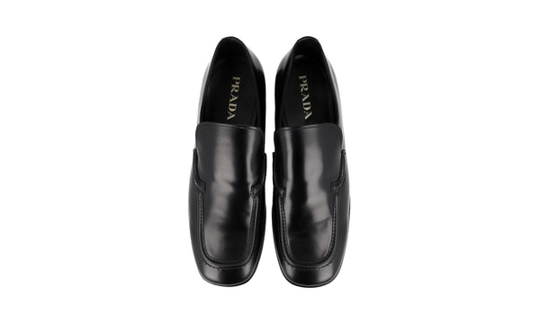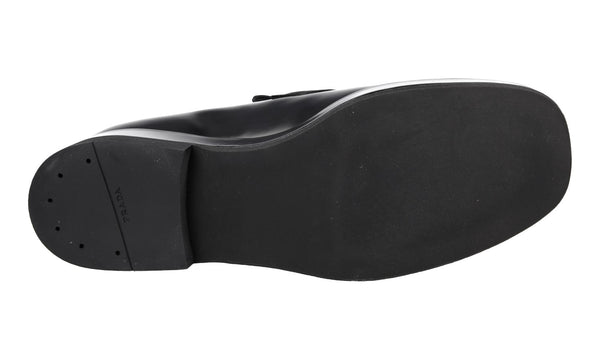 Prada Men's Black Brushed Spazzolato Leather Square Oxford Spray Runway Business Shoes 2EA165