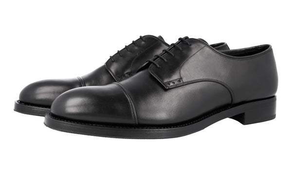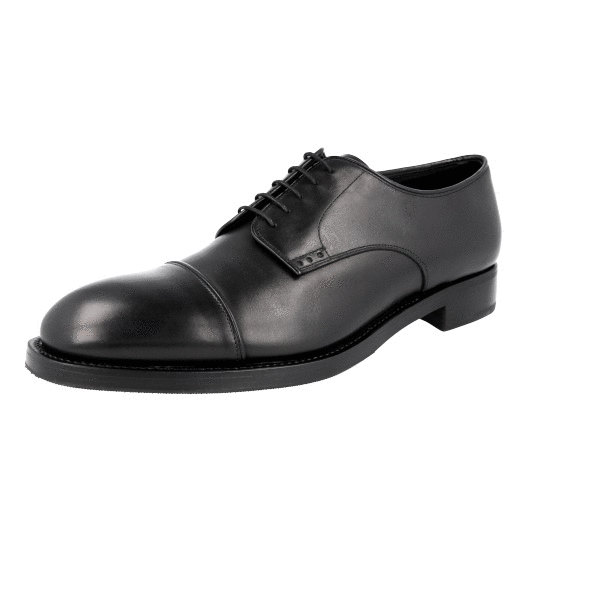 Prada Men's Black welt-sewn Leather Welt Sewn Cap Toe Derby Business Shoes 2EA129