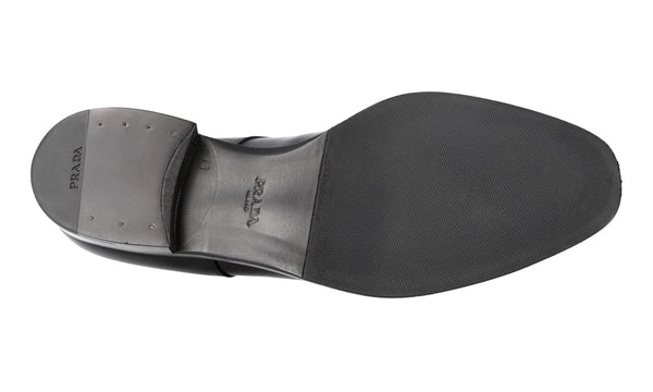 Prada Men's Black Brushed Spazzolato Leather Square Oxford Spray Runway Business Shoes 2EA165