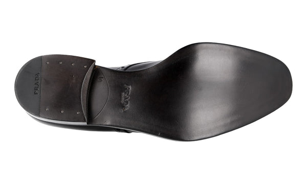 Prada Men's Black Brushed Spazzolato Leather Square Oxford Spray Runway Business Shoes 2EA165