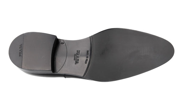 Prada Men's Black Brushed Spazzolato Leather Square Oxford Spray Runway Business Shoes 2EA165