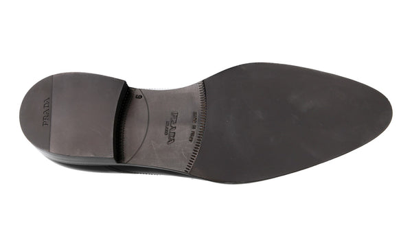 Prada Men's Black Brushed Spazzolato Leather Square Oxford Spray Runway Business Shoes 2EA165