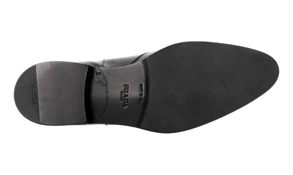 Prada Men's Black Brushed Spazzolato Leather Square Oxford Spray Runway Business Shoes 2EA165